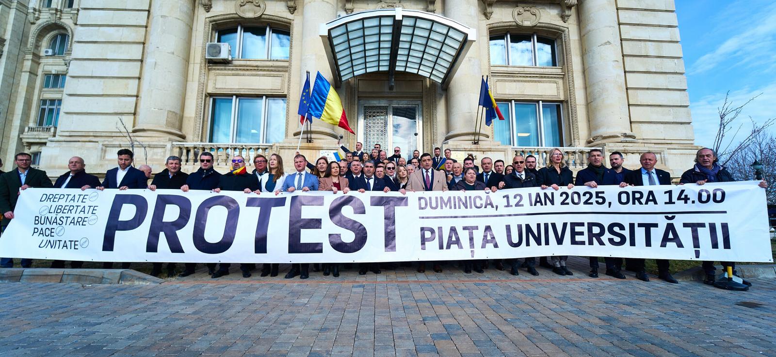 AUR, partidul condus de George Simion, a anunțat un „protest masiv pentru libertate și democrație” pe 12 ianuarie, începând cu ora 14:00, ca reacție la decizia Curții Constituționale a României (CCR) de a anula alegerile prezidențiale.